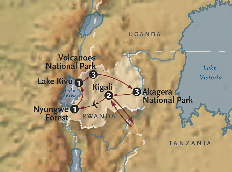 After breakfast, transfer to the airport for your included flight to the western reaches of Rwanda. On arrival in Kamembe, gateway to Nyungwe Forest National Park, you’ll be met and chauffeured to our luxury safari lodge, tucked inside the largest remaining tract of montane forest in East and Central Africa.
