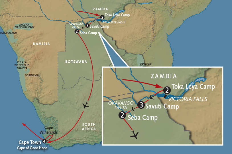 Completely unique to the Okavango Delta, your stay here at Seba Camp also includes a guided Mokoro safari (water levels permitting). Traveling comfortably in one of these traditional dug-out canoes, you’ll explore the pristine waterways of the Delta, winding your way through rustling reeds accompanied by the call of the African fish eagle. Patience and sharp eyes can be rewarded with unforgettable sightings of hippo, elephant, delta impala, hundreds of bird species and beautiful rare flowers. Meals B,L,D