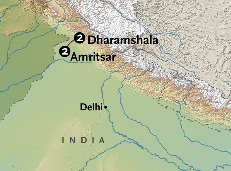 Later this afternoon, you’ll travel about 18 miles outside of town to the Wagah Border, the only open crossing point between India and Pakistan. Just before the sun sets, you’ll witness an incredible ceremony that has unfolded here every evening since 1959. With great pomp and fanfare accompanied by patriotic music from both sides, you’ll see Indian Border Security Forces and Pakistani Rangers march forth to lower their respective flags. After the ceremony, you’ll return to your hotel in Amritsar. Meals B