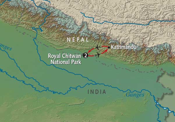 For your convenience, we’ve included your flight today from Kathmandu to Bharatpur Airport, where you’ll be met and escorted to your choice of safari lodge. Both the deluxe Kasara Jungle Resort and luxury Tiger Tops Tharu Lodge are ideally situated in beautiful pristine settings on the borders of Chitwan National Park. The Taj Meghauli Serai is a luxury retreat of villas and guestrooms perched on the edge of the Rapti River and Chitwan National Park.