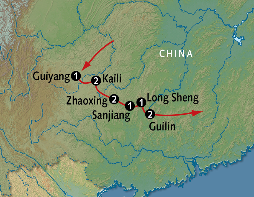 Today’s scenic overland journey brings you to Guangxi province, renowned for its amazing agricultural terraces that climb up the mountainsides giving the region its nickname, the Dragon’s Backbone! Arrive in Longsheng and check in to the enchanting Li-An Lodge, built atop a ridge with magnificent views over the rice terraces of Ping’an village. With only 16 guestrooms, this intimate lodge is stylishly accented with regional arts and crafts. After time to refresh, join your guide to explore the village and take in the sweeping panorama of the Dragon’s Backbone! Meals B,L,D