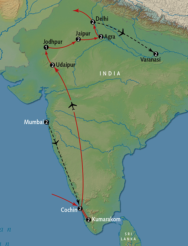 An unforgettable experience awaits you this morning as you ascend to the Amber Palace! Upon reaching the hilltop, you’ll join your guide for a tour of this grand monument, a legacy of the never-conquered Rajput Kingdom. Admire its lavish courtyards, beautifully decorated halls and the lovely Chamber of Mirrors. Then return to the city to marvel at the lovely Palace of Winds, built at the end of the 18th century so that women of royal families could conceal themselves behind its latticed façade as they watched the hustle and bustle of the street activity below. This is the heart of Jaipur’s celebrated shopping district, so you’ll have some free time to browse for gifts and mementos.