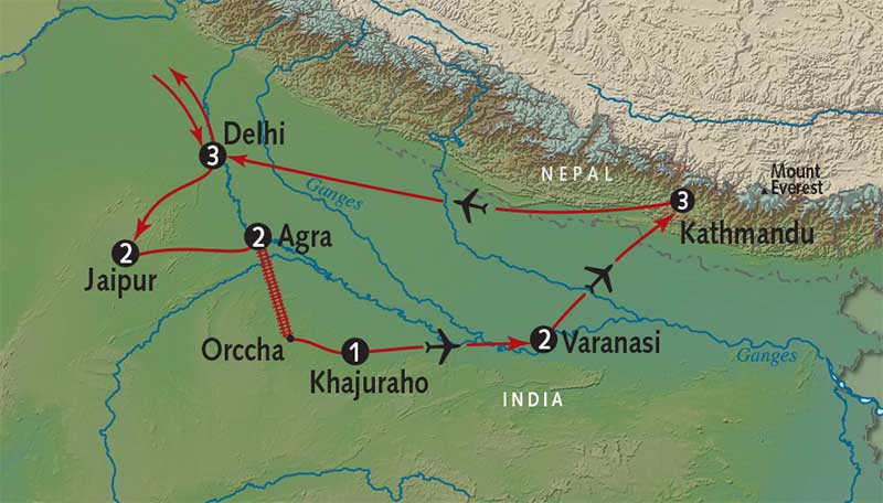 Then transfer to the airport for your included flight to Varanasi where you’ll be met and escorted by private car to the Taj Gateway Hotel. Later in the afternoon, visit Sarnath where Buddha gave his first sermon. This evening, head to the banks of the sacred Ganges River with your private guide to witness the Aarti Ceremony, an ancient Hindu ritual of light and devotion. Meals B
