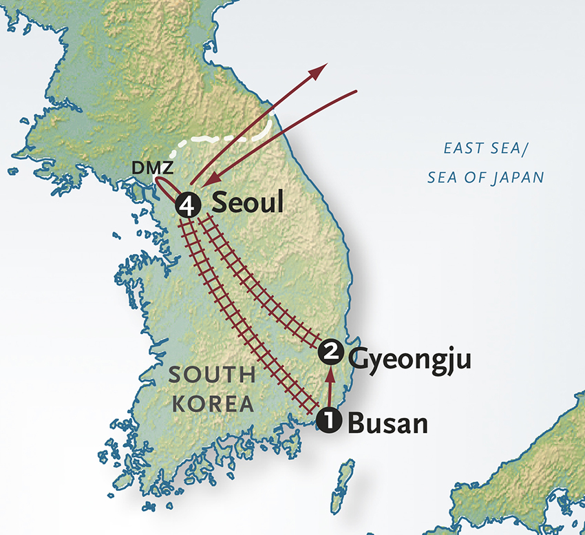 Your guided exploration into Korea’s rich history begins at the resplendent 500-year-old Gyeongbokgung Palace where you’ll see the Royal Changing of the Guard, a colorful spectacle that traces its roots to 1469! On the grounds of the Palace, the National Folk Museum offers fascinating insight into Korean history and culture. Stroll along the streets and alleys of Insadong, home to numerous antique shops and handicraft galleries, and then explore Gwangjang Market. Established in 1905, this was the country’s first daily market and although it’s become popular with visitors from abroad, it’s still where local residents come to shop for the finest quality silks, textiles, beddings and handicrafts. And with numerous food vendors specializing in traditional Korean snacks, it’s also a foodie’s paradise! Meals B