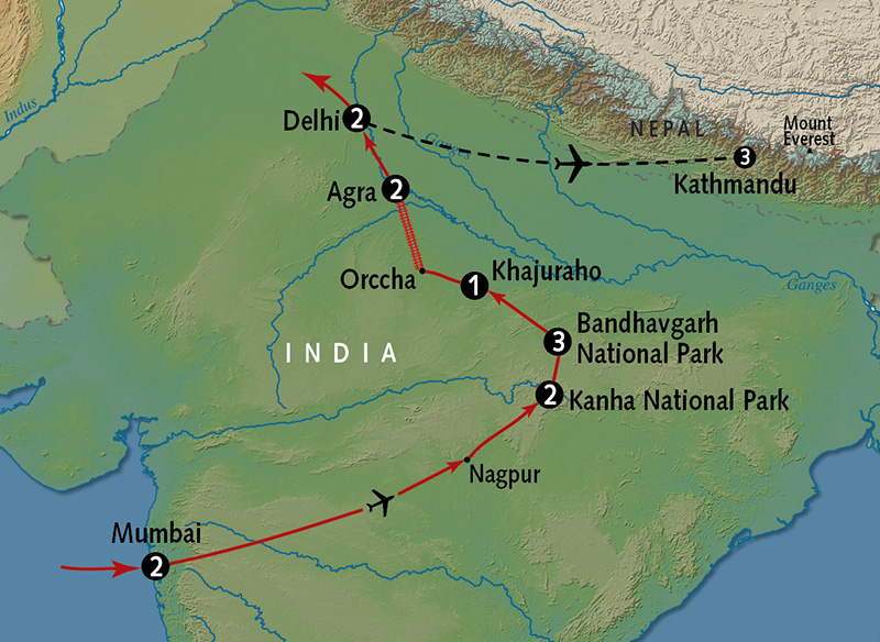 Lauded for its successful conservation work with the Royal Bengal tiger and immortalized in The Jungle Book, Kanha offers excellent wildlife viewing. Your morning and afternoon game drives offer a chance to observe tigers, rare swamp deer, leopards, and the world’s only 4-horned antelope. Meals B,L,D