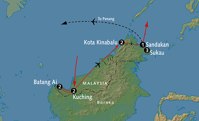 Early this evening, your guide will be waiting to take you into town where you’ll have a chance to explore Kota Kinabalu’s bustling shops and markets. For dinner tonight, you’ll be able to choose from a wide variety of Asian flavors including Malay, Chinese, Indian, Thai, Japanese, Filipino and local ethnic specialties. Many of the region’s favorite dishes feature fresh, locally caught sea food and exotic tropical fruits. Meals B,L,D