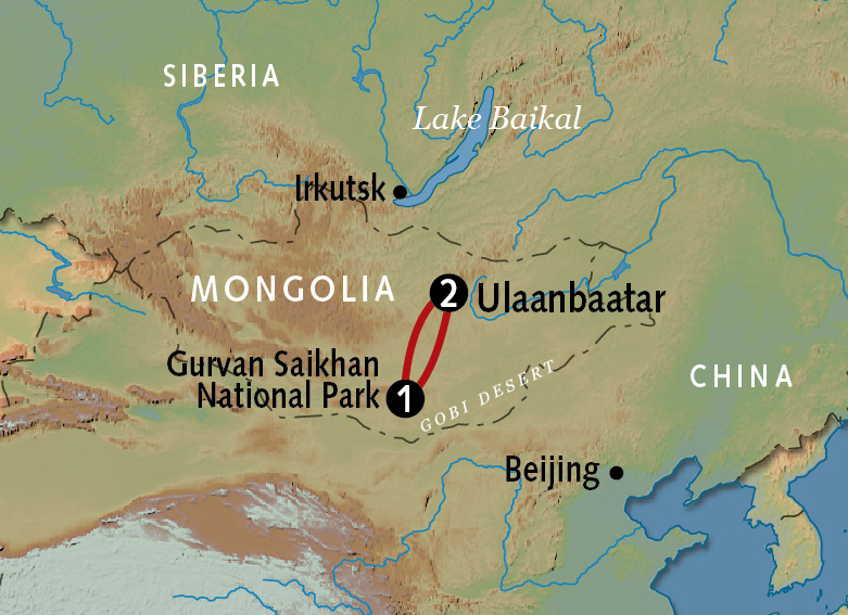 Transfer to the airport this morning for your included flight into the Gobi Desert. Although this is widely regarded as one of the harshest environments on the planet, the Gobi is surprisingly rich in geological and wildlife diversity. Its vast landscapes are home to numerous animals including gazelles, antelopes, wild camels, ibex wild sheep and the endangered Gobi bear. Upon arrival, your private sightseeing takes you first into the spectacular landscapes of Yol Valley National Park. Enjoy a refreshing morning hike with your guide and pause to take in the stunning sight of the Gobi Glacier. With luck and sharp eyes, this is also a great opportunity to espy some of the Gobi’s amazing creatures. Then meet with camel breeders at their camp for a fascinating look into their Nomadic traditions and way of life. Spend an unforgettable night in your own private Mongolian-style tent at the Gobi Discovery Ger Camp. Meals B,L,D