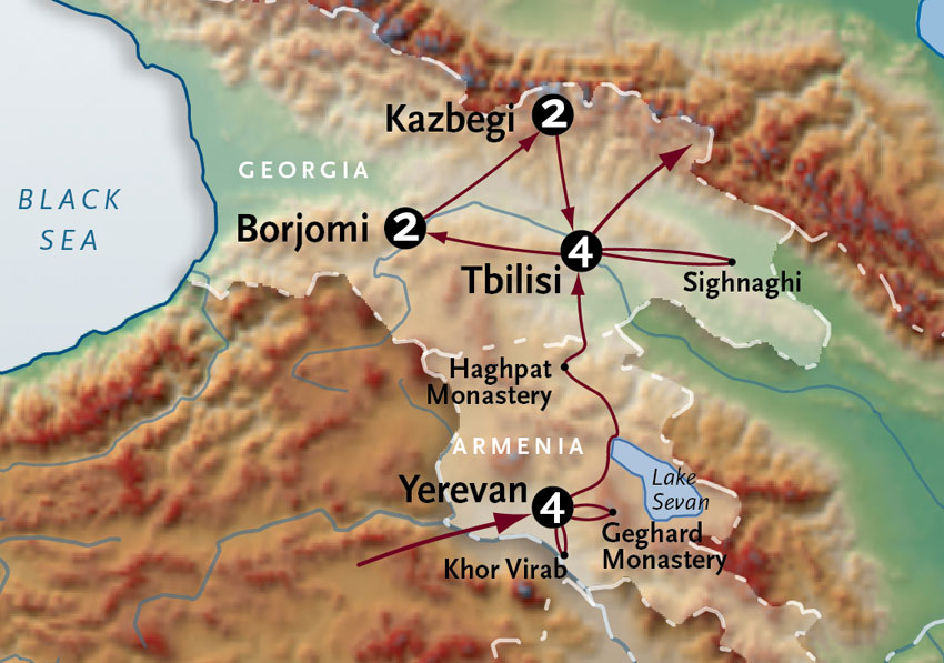 For lunch, we’ve made special arrangements to dine with a family that has lived in these mountains for generations. Congenial conversation with our Georgian guide to translate as needed promises an intimate and genuine experience of life in the Caucasus. In the afternoon, we’ll journey deep into the breathtakingly beautiful Sno Valley to spend time in Juta, a remote village outpost of the Khevsur; living mainly in the mountains just to the east of the valley, legend has it that this community is descended from European Crusaders who wandered lost in Central Asia centuries ago – ultimately settling in the Greater Caucasus. Although there is some scholarly skepticism, early 20th-century photographs of the Khevsur show them in chain armor reminiscent of medieval French knights. And clearly noticeable on their shields are the letters A.M.D – Ave Mater Dei, the motto of the Crusaders!