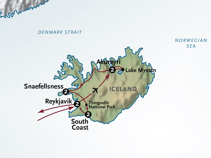 Comprised of friendly coastal villages, spectacular mountains, remote beaches, rushing streams and miles of untouched, wildly beautiful scenery, the Snæfellsnes Peninsula is one of the island’s most captivating regions. In the company of our engaging Trip Leader, you’ll spend the day exploring the Peninsula’s diverse wonders. Once a busy trading post, the tiny village of Arnarstapi overlooks a natural harbor that is protected by unusual basalt columns and surrounded by deep ravines and grottoes. Along the coast, you’ll find amazing rock formations, dramatic cliffs and small hidden bays full of sea birds. Crossing to the northside of the Peninsula, you’ll see the lone mountain peak of Kirkjufell. Soaring 1,500 feet above the surrounding countryside and almost perfectly symmetrical, with the rushing Kirkjufellsfoss Waterfall in the foreground, this is said to be one of the most photographed sites in all of Iceland.