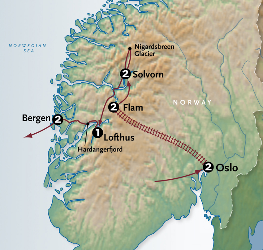 At mid-morning, we’ll step off at the dock in the tine waterside hamlet of Skjerdal. An invigorating walk will be well-rewarded with beautiful views along the length of the Aurlandsfjord and a chance to see several cascading falls. Arriving at a family-run mountain farm, we’ll learn how they handcraft a variety of artisanal goat cheeses; the adventurous might even try their hand at milking one of the goats! Retreating to the farm’s terrace, perched on the hillside high above the fjord, we’ll enjoy a delightful al fresco lunch with a sampling of their cheeses and fresh farm-grown organic fare. We’ll be back at our hotel in Flåm by mid-afternoon so you’ll have plenty of time to relax and enjoy this idyllic setting before we gather again for dinner. Meals B+L+D