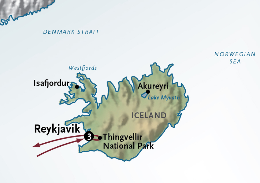 After an early breakfast, you’ll be chauffeured to the airport for your included morning flight to Akureyri. On arrival, your local guide – a resident of the North Coast – will be waiting to take you on a full-day private tour. Heading east, you’ll travel along the picturesque Eyjafjordur coastline, with its stunning views of mountains and sea. At Godafoss Waterfall, you’ll behold a thundering cascade that plunges 40 feet across a chasm that stretches nearly 100 feet across. In the year 1000 after Christianity was declared the official religion of Iceland, statues of Norse Gods were hurled into the falls – earning these cascades its name as the “Waterfall of the Gods.” Not far away, you’ll behold the captivating beauty of Lake Myvatn. With an estimated 132,000 gallons of water plunging over a 320-foot wide chasm every second, the roaring Dettifoss Waterfall is said to be the most powerful cascade in all of Europe. Then visit the horseshoe-shaped Ásbyrgi Canyon before spending time in Húsavík. With only 2,000 residents and a lively harborfront, this friendly community offers a chance to experience life in the North. After sightseeing, we’ll take you back to Akureyri where you’ll spend the night at the inviting Hotel Kea. Meals B