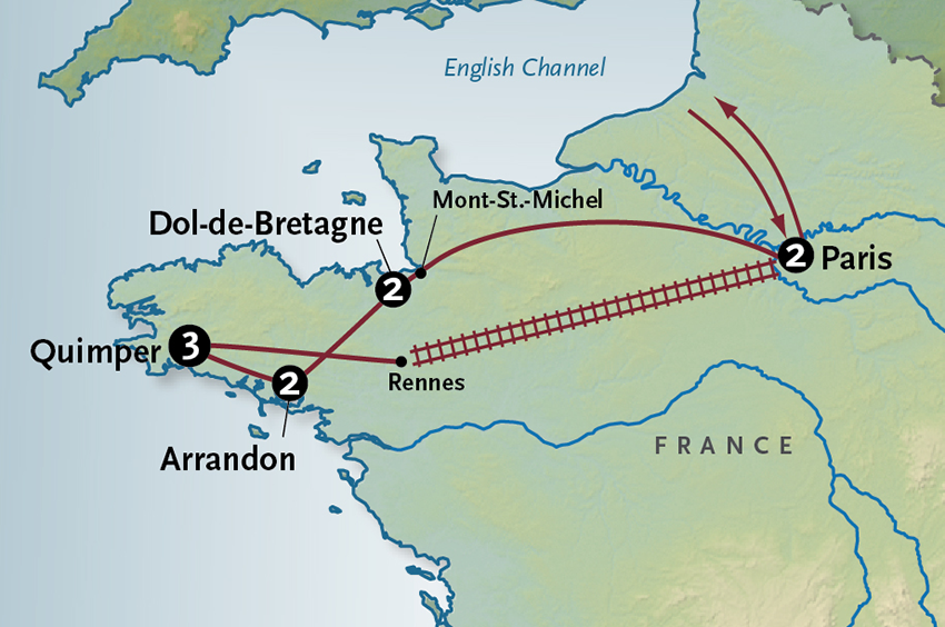Sitting down to lunch at a local creperie offers a chance to sample both savory and sweet versions of this regional specialty! Afterwards we’ll travel to nearby Dinan, an enchanting riverfront city with ancient ramparts, handsome half-timber buildings and winding cobblestone lanes that have all be wondrously preserved. Although highly recommended by several guidebooks as a “must see stop” in Brittany, our expertly guided tour reveals the true spirit of this work-a-day town and its enduring Breton culture. This evening, we’ll dine here in Dinan at Chez La Mère Pourcel. Set in a handsome 15th-century timber frame landmark, this renowned restaurant has been serving regional specialties since 1927. We’ll return to Dol-de-Bretagne for another night’s stay. Meals B+L+D
