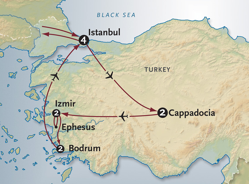 After a sumptuous breakfast buffet, another enriching day begins with a privately guided tour of the Topkapi Palace – fabled residence of sultans, courtiers, concubines and eunuchs for more than 400 years since its founding in the 15th century. In addition to its pavilions, kitchens, barracks, audience chambers and sleeping quarters, you’ll see the Harem that was the exclusive domain of the Sultan and his family. In the Treasury, you’ll discover a glittering collection including crown jewels and gem-studded daggers. Then in the heart of the bustling Old City, you’ll explore the labyrinthine passageways of the one-and-only Grand Bazaar, where colorful shops and vendor stalls overflow with a bewildering variety of items including jewelry, spices, leather goods, textiles, carpets and ceramics.