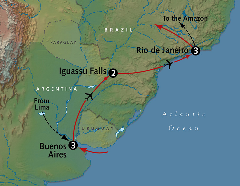 Argentina’s vibrant capital is a rich mosaic of cultures, with Spanish, Italian, German and French influences in the city’s architecture, cuisine and joy-filled attitude of its residents. Join our insightful native-born guide to discover the city he loves and knows so well from Plaza de Mayo to historic neighborhoods like La Boca, the colorful enclave where the Tango was born. Drive through lovely Palermo and see the Recoleta Cemetery where Eva Peron was laid to rest. AAA Engaging Experience: Learn more about Ms. Peron’s fascinating life at the Evita Museum, set inside an historic mansion which she acquired in 1948 as a shelter for women. This evening, we’ll take you to Café de lost Angelitos, one of the best places in town for dinner and an authentic performance of fiery Tango. Meals B,D