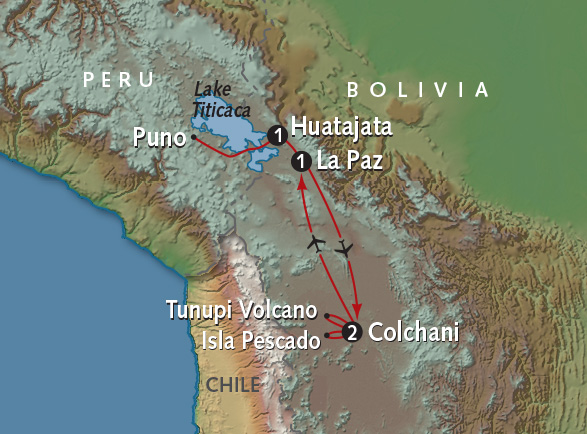 Transfer this morning to the airport in La Paz for your flight to Uyuni, where you’ll embark on a full-day excursion to the incredible Uyuni Salt Flat, one of the world’s most unusual natural wonders. Covering a vast expanse of nearly 7,500 square miles, this is the largest salt bed on Earth. Tour the Salt Museum in Colchani and see the ancient methods which are still used today to extract the salt. Then visit Inkawasi, an extraordinary island oasis of unique vegetation in the middle of the desolate salt pan. This evening’s sunset over this seemingly endless expanse of salt will be unforgettable. Tonight will be your first of two nights in a most unusual hotel made of salt! Meals B,L,D