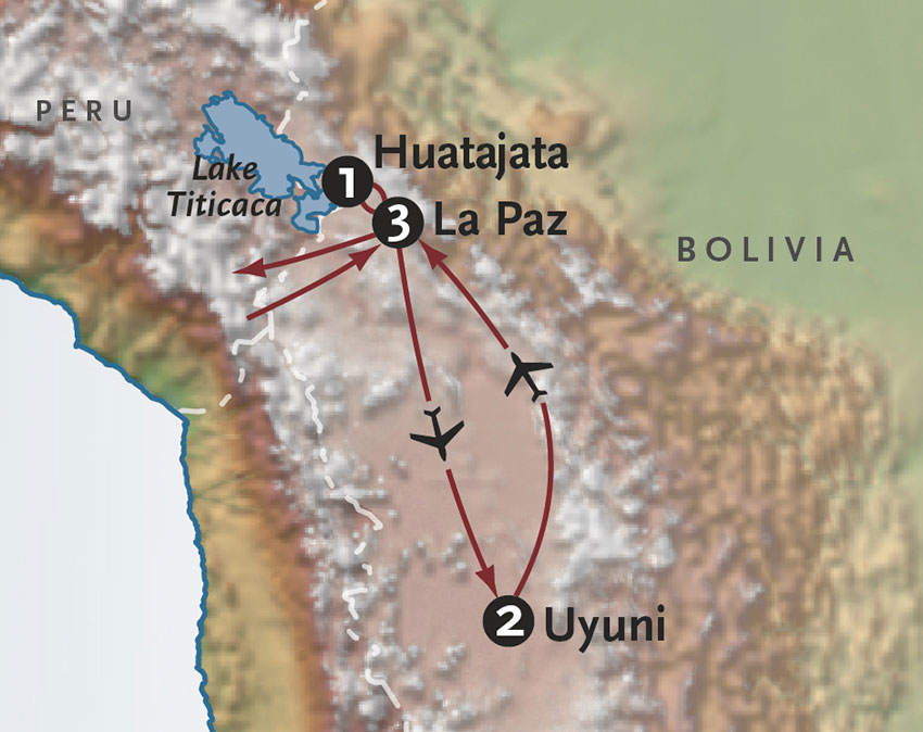Transfer this morning to the airport in La Paz for your flight to Uyuni, where you’ll embark on a full-day excursion to the incredible Uyuni Salt Flat, one of the world’s most unusual natural wonders. Covering a vast expanse of nearly 7,500 square miles, this is the largest salt bed on Earth. Tour the Salt Museum in Colchani and see the ancient methods which are still used today to extract the salt. Then visit Inkawasi, an extraordinary island oasis of unique vegetation in the middle of the desolate salt pan. This evening’s sunset over this seemingly endless expanse of salt will be unforgettable. Tonight will be your first of two nights in a most unusual hotel made of salt! Meals B,L,D