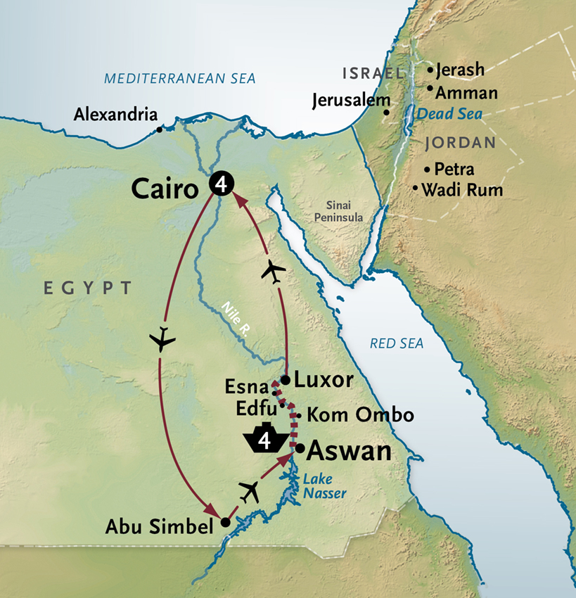 Mighty Petra was a strategic link in ancient caravan routes and is still stunningly preserved after nearly 2,000 years. Built by the Nabataeans and later abandoned, it was lost to civilization for centuries until its re-discovery by a Swiss adventurer. The entire city is carved into the sides of a deep gorge, and the only entrance is through a narrow opening called the Siq. This morning, as you enter into Petra from between these 100-foot cliffs, a remarkable vista unfolds… Temples, tombs and dwellings chiseled out of the solid, rose-hued stone. Over the next 3 hours, your expertly-guided tour of Petra includes the famous Treasury and other ancient monuments like the haunting Street of Facades and the Roman Theater. After your guided tour, you can linger on to explore more of the Valley at your own pace: Numerous tombs, large and small residences, temples, bathhouses and other public spaces offer fascinating insight into what life was like when Petra was a thriving city. We’ve included full-day entry, so you can even return to the Mövenpick Hotel to relax or have lunch before returning later in the afternoon to continue your independent exploration.