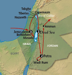 The ancient city of Petra, wondrously preserved, is carved into the sides of a deep gorge; the entrance is through a narrow opening called the Siq. As you enter this legendary Lost City between the 100-foot cliffs, a breathtaking vista unfolds: temples, tombs, and dwellings chiseled out of the rose-hued stone. Your expert guide will bring to life these ancient stones and the great civilization that thrived here. Meals B