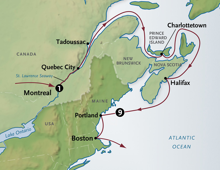 After lunch onboard, you’ll have free time if you wish to return ashore to explore the charming cobblestone streets of the Petit Champlain Quarter. Here you’ll find stately stone buildings and centuries-old fur trading posts that are now home to inviting boutiques and cafes. Meals B+L+D
