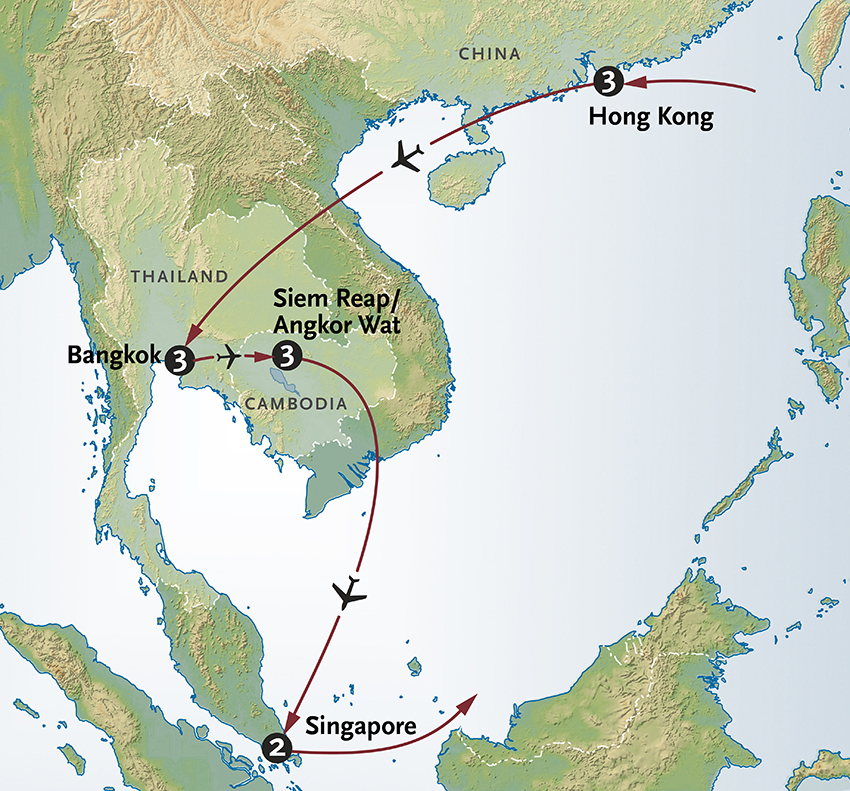Hong Kong + Bangkok + Angkor Wat + Singapore" />