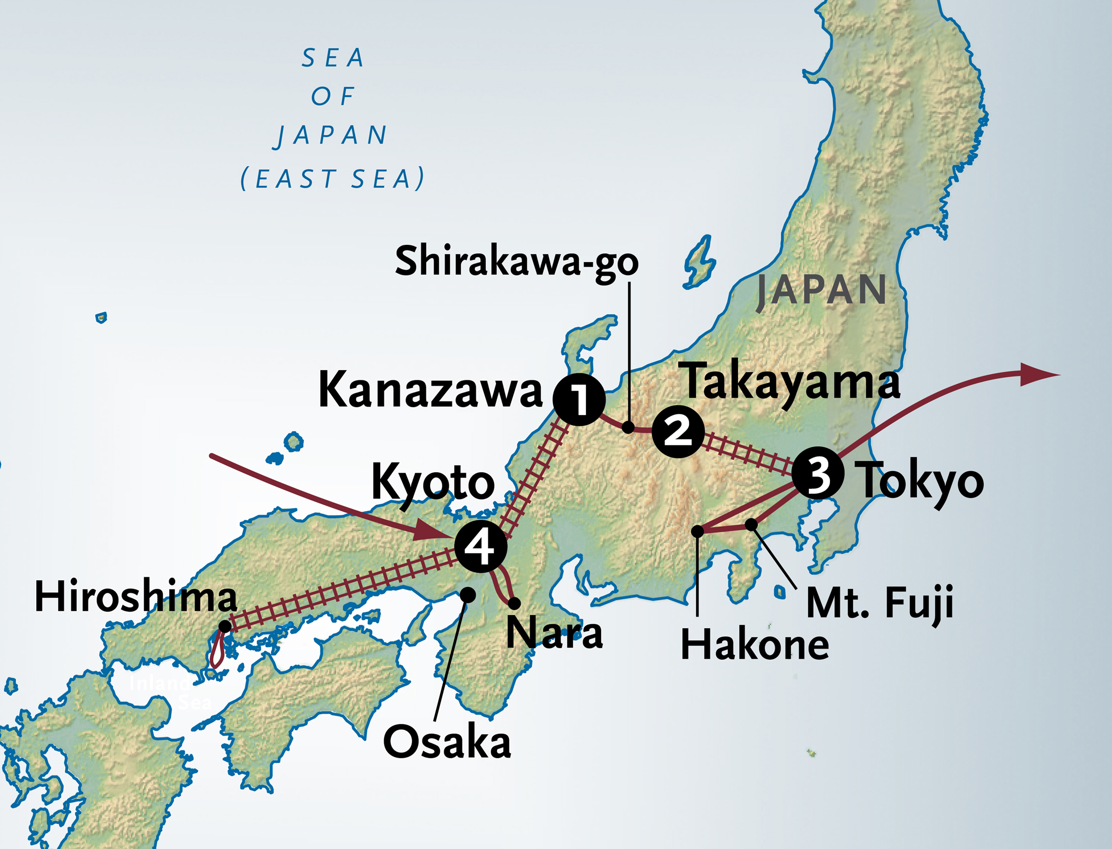 With colorful centuries-old traditions, Takayama’s Spring + Fall Festivals are highlighted by a spectacular parade of giant floats, many of them dating to the 17th century with remarkable, ingeniously-animated moving parts. Go in Spring and delight in the island’s famed Cherry Blossoms or join us in the fall for the brilliant autumn foliage – what the Japanese call Momiji.